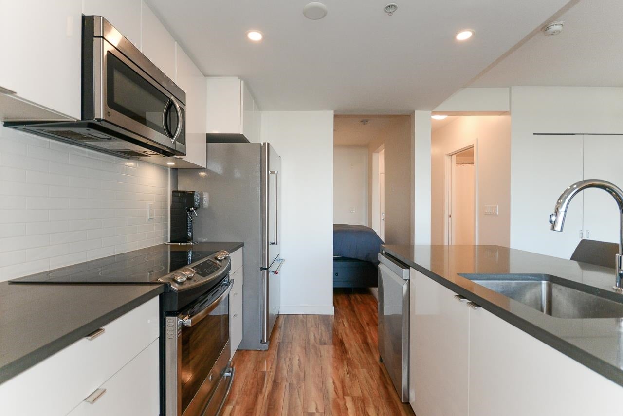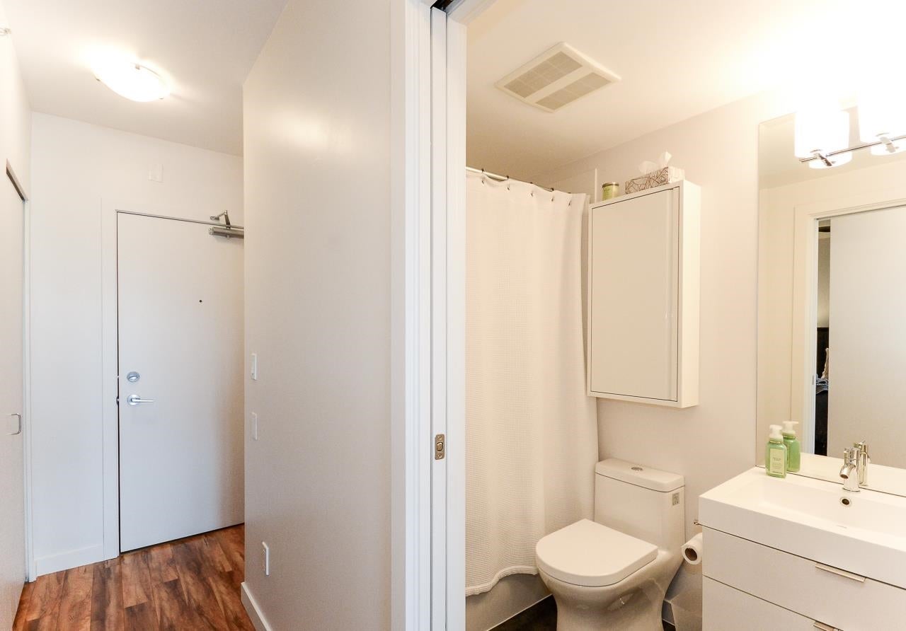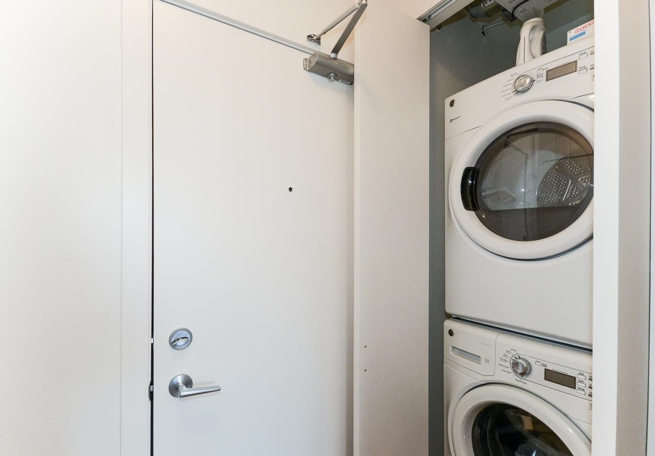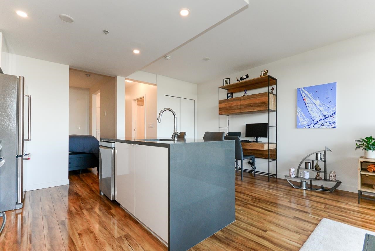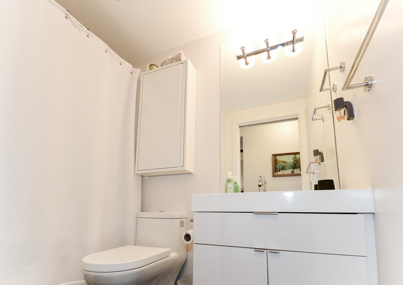 Great garden apartment in SHINE. This classy concrete low-rise is in the heart of Mount Pleasant with views of the North Shore Mountains. Nicer than new this spotless 1 bedroom boasts the "Great Room" living with a bright white kitchen, quartz counters, big island & wall to wall windows overlooking the private 175 sq. ft. patio. This outdoor space extends your living area and overlooks a secure garden. heat & hot water are included in the maintenance fee. There is a new refrigerator, remote control blinds & recently installed heat pump for A/C. This is one sweet suite!