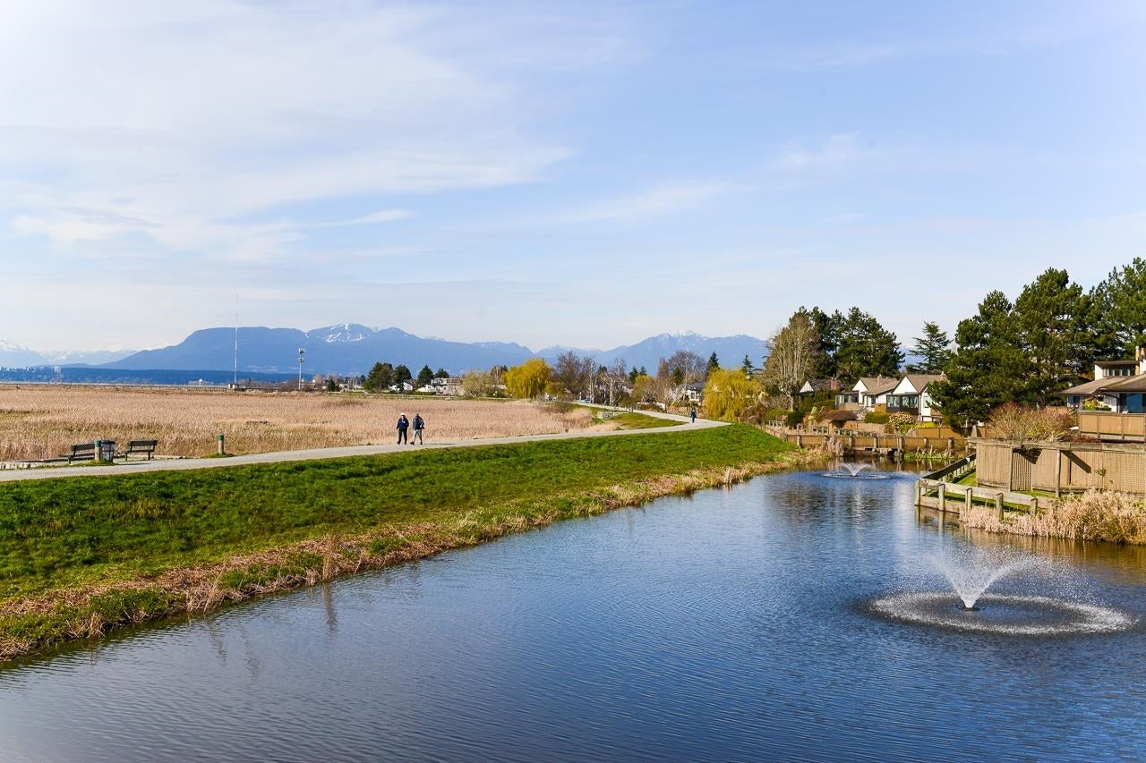 Stunning Gulf Island and Northshore Mountain views from this spectacular end unit in popular Mariners Village. Boasts a cozy gas fireplace, hook-up for gas on deck, vinyl windows throughout, hardwood floors, open kitchen to give that 'Great Room' feel & spacious Master that opens to a low maintenance patio. Bath has a big soaker tub, stand alone shower & heated floors. Resort style amenities with indoor pool, hot tub & sauna. Perched on the West Dyke it is a short walk to Steveston Village & Garry Point Park. Open Sat April 4 2-4pm